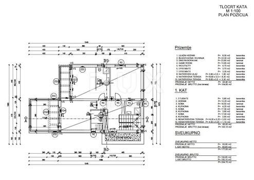 Die erste Etage besteht aus einem Esszimmer, einer Küche, einer Toilette, einem Spielzimmer und sogar zwei Abstellräumen, während sich auf der zweiten Etage drei Badezimmer und drei Schlafzimmer mit einer überdachten Terrasse befinden, die einen Blick auf die wunderschöne Adria bietet.