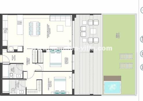 Im Zentrum befindet sich ein beeindruckendes Gemeinschafts-Schwimmbad mit Jacuzzi, ein Kinderplanschbecken und ein Multisportplatz. Der große Gemeinschafts-Bereich bietet den Bewohnern phantastische Freizeit-Möglichkeiten mit Paddle-Tennisplatz, einen Spielplatz, einen Bio-Fitness-Bereich, Bereiche zum Spazierengehen, Fitnessstudio und außerdem Coworking-Räume und ein Hallenbad.