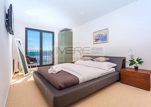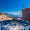 Über drei Etagen verteilt sich bei dieser vollklimatisierten Immobilie moderner Luxus, kombiniert mit lichtdurchfluteten und offenen Räumlichkeiten. Die Zufahrt mit vier Außenstellplätzen liegt oberhalb der Villa, deren drei Etagen sowohl durch einen Innen- als auch Außentreppe verbunden sind. Das Erdgeschoss bietet zwei Schlafzimmer mit jeweiligen Bad en suite und Zugang zu einer schönen Teakholz-Sonnenterrasse mit 33 m2 großen Pool mit eingebauter Massageanlage und Außendusche, der von Sonnenliegen und einem Essbereich im Freien umgeben ist und einen traumhaften Panoramablick auf das Meer eröffnet. Im hinteren Bereich des Erdgeschosses finden Sie einen Entertainment Bereich vor, ausgestattet mit Fernseher, Tischtennis und elektronischen Darts-Spiel. Der erste Stock, der sowohl über die Außen- als auch die Innentreppe zugänglich ist, bietet einen offenen Bereich, der das Wohnzimmer, den Essbereich und die moderne offene Küche zu einer Einheit verbindet. Zusätzlich bietet das Erdgeschoss eine separate Gästetoilette und einen Hauswirtschaftsraum. Große Glasfronten trennen den Wohnbereich von der schönen, nach Süden ausgerichteten Sonnenterrasse mit Meerblick. Zusätzlich führen große Glasschiebetüren aus dem Essbereich auf einen weitere, nach Osten ausgerichtete Terrasse, auf der ein weiterer Essbereich im Freien sowie der beheizbare Whirpool untergebracht sind. Eine private Konoba mit elektrischen Grill, Weinbar, einer zweiten kleinen Küche sowie einen Essbereich für 12 Personen befindet sich im hinterem Teil des ersten Obergeschosses und ist von der Ostterrasse zugänglich. Das zweite Obergeschoss verfügt über zwei weitere Schlafzimmer mit en suite Badezimmern und Zugang zu jeweils kleinen, privaten Terrassen mit Panoramablick auf das Meer. Auf dieser Etage ist auch der Wellnessbereich untergebracht, der neben einen klimatisierten Fitnessbereich eine finnische Sauna bietet. Die Villa ist von einer mediterranen Flora und Fauna umgeben, in der die mediterranen Düfte Lavendel, Salbei und Rosmarin die Schattierungen von Oliven- und Mandarinenbäumen ergänzen. Dies ist der perfekte Ort um die atmosphärische Kulisse zu genießen und rundet somit das Bild einer perfekten Immobilie ab.