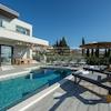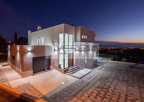 Die moderne und geschmackvolle Villa hat Vieles zu bieten, sowohl im Inneren als auch im Außenbereich. Die Räume, alle mit viel Liebe und Aufmerksamkeit eingerichtet, sind über zwei Etagen verteilt. Im lichtdurchfluteten und geräumigen Erdgeschoß befindet sich das große Wohnzimmer, das in eine komplett ausgestattete Küche mit Essbereich übergeht. Den beeindruckenden Außenbereich können Sie direkt vom Erdgeschoß aus betreten. Hier verfügen Sie sowohl über einen privaten, beheizbaren Pool (38 m²), ausgestattet mit Massagedüsen und umgeben von einem bequemen Sonnendeck mit Liegestühlen als auch über eine überdachte Terrasse, die zum Speisen im Freien einlädt. Darüber hinaus bietet der Außenbereich einen Spielplatz für Kinder, der mit einem Trampolin, einer Schaukel, einer Wippe und einer kleinen Rutsche ausgestattet ist. Abgerundet wird das Angebot im Erdgeschoss durch ein Schlafzimmer, ein voll ausgestattetes Badezimmer, eine Waschküche sowie eine Garage für ein Fahrzeug. Eine Treppe im Eingangsbereich des Erdgeschosses führt ins Obergeschoß, in den sich die restlichen drei Schlafzimmer, jedes mit einen en-suite Badezimmer, befinden. Von allen drei Schlafzimmern haben Sie direkten Zugang zu einer schönen Sonnenterrasse, von der aus Sie einen traumhaften Meerblick und romantische Sonnenuntergänge genießen können. Neben der Garage bietet die Villa vier zusätzliche Außenparkplätze und ist voll klimatisiert. Die Villa steht voll möbliert und ausgestattet zum Verkauf.
