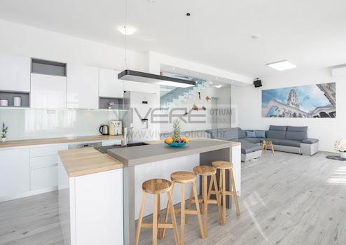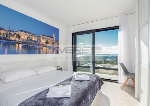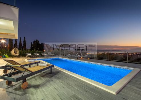 Diese außergewöhnliche Immobilie, eine sehr gelungene Kombination aus Fäche, großzügigen Innenräumen, geschmackvollem Design, reichlich Platz im Freien und atemberaubenden Ausblicken aufs Meer und das vorgelagerte Archipel, bietet eine atemberaubende, moderne Architektur und fügt sich elegant in die natürliche Umgebung ein. Die Villa befindet sich im malerischen Dorf Kučine am Südhang des Mosor-Gebirges ohne Nachbarn in unmittelbarer Nähe. Die wunderschöne historische Stadt Split, das touristische Zentrum Dalmatiens mit einem außergewöhnlichen Angebot an Bars, Restaurants und Sehenswürdigkeiten, liegt etwa 20 Autominuten von der Unterkunft entfernt. Der nächste Strand ist ca. 5 km entfernt. Neben einem schönen Blick auf das Meer und die unberührte Natur bietet die Villa dank des reichen Angebots und der fantastischen Lage zahlreiche Möglichkeiten für Unterhaltung und Erholung.
