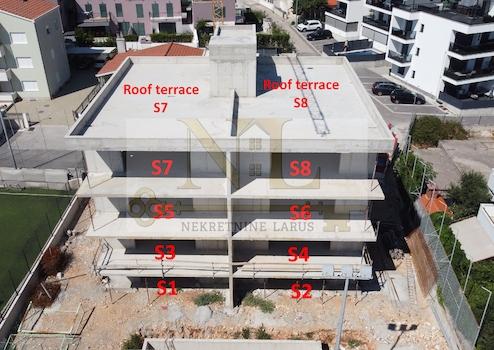 Wir verkaufen eine Wohnung im ersten Stock, S3, 250 Meter vom Meer und dem Strand entfernt in Okrug Gornji, Insel Čiovo.
