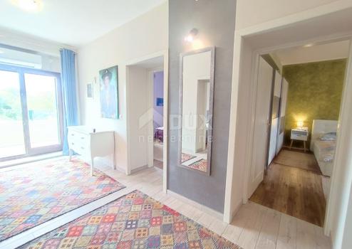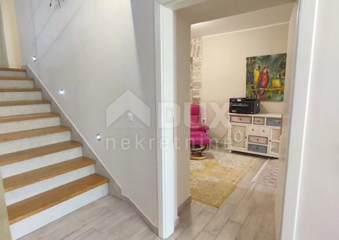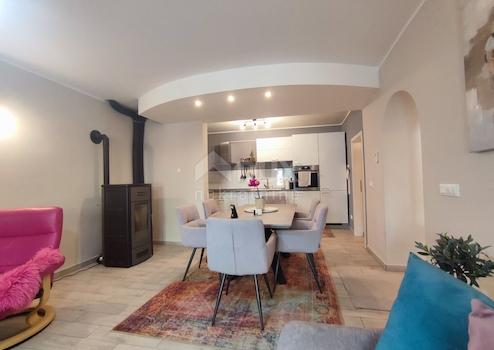 Diese komplett renovierte Steinvilla mit insgesamt 320 m2 Wohnfläche, aufgeteilt in zwei Wohneinheiten, liegt nur wenige Minuten vom sehenswerten Žminj entfernt. 1. WOHNEINHEIT verteilt auf die 2. Etage; Erdgeschoss, Zwischengeschoss und 1. Stock des Hauses, das aus insgesamt 220m2 Wohnfläche besteht; Erdgeschoss: Gleich am Eingang befindet sich ein großzügiger Eingangsbereich und ein Flur, der den privaten Teil des Hauses vom Teil für den Alltag trennt. Rechts vom Eingang im privaten Teil befinden sich ein kleines Arbeitszimmer, ein Schlafzimmer und ein Gästebad. Links vom Eingang befindet sich ein großer offener Raum mit einem sonnigen Wohnzimmer mit Essbereich und einer modernen Küche. Vom selben Raum aus gibt es einen direkten Ausgang zu einer größeren überdachten Terrasse mit Tisch und professionellem Grill. Für Unterhaltung mit Freunden und Familie kann die Taverne genutzt werden, die über einen privaten Eingang durch die Küche zugänglich ist. Und es gibt auch einen kleinen Abstellraum, ideal für Küchenutensilien. Eine breite Plattformtreppe, die mit edlem Eichenholz verkleidet ist und über eine schöne integrierte Beleuchtung verfügt, führt zum Zwischengeschoss und in das Obergeschoss. Zwischenboden; Es gibt ein größeres Badezimmer, einen Technikraum, der genutzt werden kann, sowie einen „Hauswirtschaftsraum“ mit Waschmaschine, Wäschetrockner und Bügelstation. Obere Etage; Auf dem sich 3 geräumige Schlafzimmer befinden, jedes mit Zugang zu einem größeren Balkon, der sich über die gesamte Breite des Hauses erstreckt. Es ist ein idealer Aufenthaltsort mit wunderschönem Blick auf den Pool, die Natur und nachts mit Blick auf den Sternenhimmel. 2. WOHNEINHEIT mit insgesamt 100m2 Wohnfläche, gelegen im letzten 2. Stock des Hauses: Sie verfügt über einen eigenen und privaten Eingang über eine Außentreppe. Diese separate Wohneinheit ist für alle Endarbeiten bereit, was bedeutet, dass es sich derzeit um ein hohes Roh-Ba handelt und eine Anpassung an die eigenen Wünsche und Bedürfnisse noch möglich ist. Der Raum ist so organisiert, dass; besteht aus einem offenen Raum, in dem ein Wohnzimmer mit Esszimmer und Küche geplant ist, dann 2 separate größere Schlafzimmer, 1 Badezimmer und 1 WC. Das bedeutet, dass die Immobilie je nach Bedarf die Möglichkeit bietet, jede Wohneinheit einzeln oder gemeinsam durch einfache Verbindung zu einer größeren Wohneinheit zu nutzen. Der Hof des Hauses; Vollständig eingezäunter Garten, der nicht einsehbar ist und durch den Einsatz moderner Design- und Dekorationslösungen leicht zu pflegen ist. Die Gesamtfläche beträgt 315 m², darunter ein 28 m² großes Schwimmbad mit Liegewiese und ausreichend Platz zum Ausruhen und Spaß mit Freunden. Auf der Rückseite des Grundstücks gibt es eine größere Garage zum Abstellen von zwei Autos und weitere Stellplätze. Weitere Informationen; * Das Haus wurde 2019 komplett renoviert. * In jedem Zimmer gibt es einen Fernseher, Internet und eine Klimaanlage. * Es wurde eine komplette Wärmedämmung eingebaut, anschließend maßgefertigte Aluminium-Fensterläden in ozeanblauer Farbe mit verstellbaren Lamellen. * Das Dach ist gleichermaßen mit Wärme- und Wasserdämmung isoliert. Es besteht die Möglichkeit, eine Solaranlage zu errichten. * Zusätzlich zur Klimaanlage erfolgt die Heizung durch den Einbau eines neuen 14-KW-Pelletofens der Marke Piazzetta mit Heizkörpern.