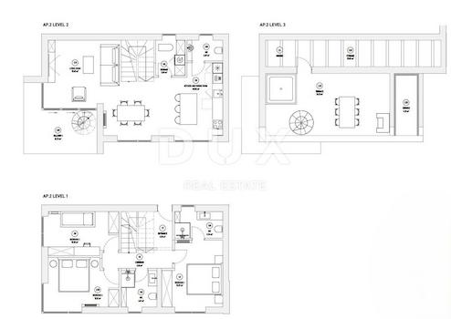 Im DUX-Angebot heben wir ein hochwertiges Neubau nur wenige Minuten vom Zentrum von Opatija entfernt. Es handelt sich um einen Neubau mit insgesamt 3 Wohnungen mit Blick auf das Meer und die gesamte Kvarner-Bucht. Die Wohnung Nummer 2 befindet sich im ersten Stock. Es besteht aus einem Flur mit Treppe, einem Hauptschlafzimmer mit eigenem Bad und zwei weiteren Schlafzimmern, die sich ein gemeinsames Bad teilen. Im zweiten Stock gibt es einen Abstellraum, eine Toilette, ein „Open Space“-Wohnzimmer mit Küche und ein Esszimmer mit Zugang zu einem 12 m² großen Balkon mit Blick auf das Meer. Die Treppe vom Balkon führt in die dritte Etage, wo sich ein Abstellraum, ein Technikraum und eine luxuriöse 22 m² große DACHTERRASSE mit Panoramablick auf Opatija und die Kvarner-Bucht befinden. Das Anwesen verfügt über einen Parkplatz und das Gebäude liegt in einer Sackgasse. Schöner Ort. 5 Minuten vom Zentrum von Opatija und 15 Autominuten vom Zentrum von Rijeka entfernt. AUSGEZEICHNETE GELEGENHEIT zum Wohnen oder Investieren zum Zweck der touristischen Vermietung. Zusätzliche Vorteile: - Außenschreinerei aus Aluminium, die eine hervorragende Isolierung bietet - Heiz- und Kühlsystem mit Wärmepumpe - Einbruchhemmende Eingangstür - Hochwertige Materialien Diese Wohnung bietet die perfekte Balance zwischen Komfort, wunderschönem Meerblick und einer hervorragenden Lage eine ideale Wahl zum Wohnen oder Investieren. Der Flachbau des Gebäudes wird im Frühjahr 2024 abgeschlossen sein. Sehr geehrte Kunden, die Agenturprovision wird gemäß den Allgemeinen Geschäftsbedingungen berechnet: www.dux-nekretnine.hr/opci-uvjeti-poslovanja