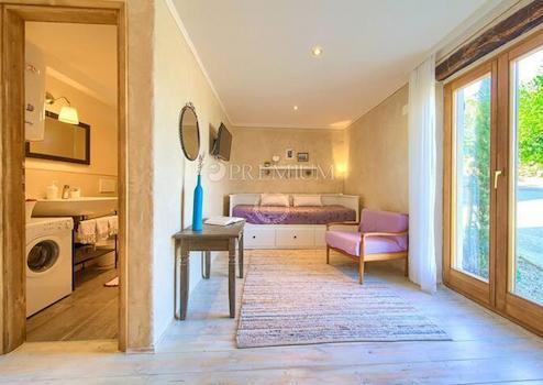 Zum Anwesen gehört auch ein wunderschön angelegter Garten von 450 m2, in dem sich eine Sommerküche mit einem Kamin, ein Jacuzzi, eine Sauna und 2 Parkplätze befinden.