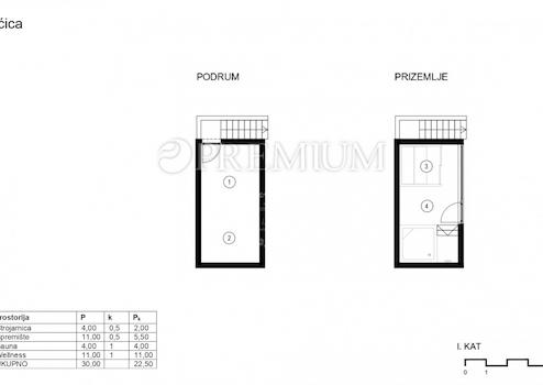 Zum Haus gehört außerdem ein Nebengebäude mit einer Fläche von 22,50 m2, inklusive Keller und Erdgeschoss. Im Untergeschoss (7,50 m²) sind Maschinen und Lager untergebracht, im Erdgeschoss befindet sich ein 15 m² großer Wellnessbereich.