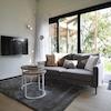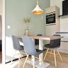 Schönes helles Wohnzimmer mit einem sehr großen Fenster. In diesem Fenster gibt es Fenstertüren wirklich fantastisch! Das Wohnzimmer ist in Kontakt mit der Küche, weil es offen ist. Im Wohnzimmer gibt es eine Fußbodenheizung.