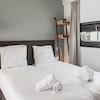 Schlafzimmer 2 hat ebenfalls ein eigenes Bad und auch hier gibt es ein Doppelbett. Großes Fenster für frische Luft.