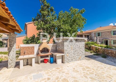 Steinhaus mit Pool im Zentrum der Insel Krk mit einem schönen Garten und Pool. Es besteht aus zwei Wohnungen von jeweils 75 m2. Jedes verfügt über zwei Zweibettzimmer und ein Badezimmer. Ebenfalls im Besitz sind zwei große Terrassen.