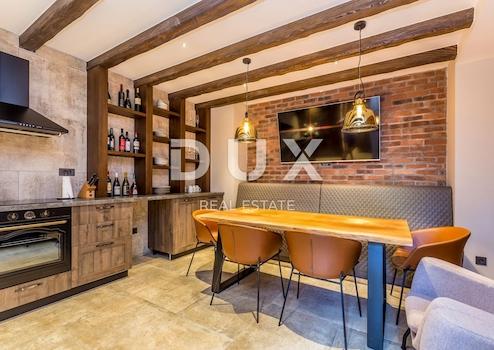 In der Nähe der Stadt Krk, auf 882 m2 Grundstück, befindet sich diese Luxusvilla mit Pool, nur 800 m2 m vom Meer und wunderschönen Buchten entfernt. Die Villa erstreckt sich über eine Fläche von 240 m2 und ist eine Kombination aus autochthoner mediterraner Bauweise und modernem Design. Beim Bau der Villa wurden hochwertige Materialien und Geräte verwendet. Es besteht aus einem Erdgeschoss, in dem sich ein geräumiges Esszimmer mit Zugang zur Terrasse und zum Garten, eine moderne Küche mit Bar, ein Wohnzimmer mit einem schönen Kamin, ein Gäste-WC und ein Abstellraum befinden. Die Innentreppe führt in den 1. Stock, wo sich drei große Schlafzimmer befinden, jedes mit eigenem Bad und Zugang zur Terrasse mit Panoramablick auf das Meer und die Insel Cres. Von der Rückseite der Villa führt eine Außentreppe zum dekorierten Multifunktionsbereich des Untergeschosses, der zum geselligen Beisammensein und Entspannen genutzt wird. Er verfügt über eine eigene Küche mit Weinkeller, einen Bereich zum Tischfußballspielen, Darts und einen Tisch Tennis und PlayStation, ein Heimkino und eine separate Toilette. Im Garten gibt es eine großzügige überdachte Terrasse, eine Sommerküche mit gemauertem Grill, eine Liegewiese und einen Swimmingpool mit Wasserfall und Whirlpool für 6 Personen. Die Villa verfügt über mehrere Parkplätze. Beim Bau der Villa wurden hochwertige Materialien und Geräte verwendet, alle Möbel sind Designermöbel, mit modernen Lampen und einer stimmungsvollen Beleuchtung, die sich über die gesamte Villa erstreckt. Die Heizung erfolgt über eine Fußbodenheizung mit Wärmepumpe in Kombination mit Fan-Coil-Kühlung. Heute kennen wir Krk als Touristenziel mit außergewöhnlichem kulturellem und künstlerischem Erbe, wo die antike Splendidissima Civitas Curitarum (die prächtige Stadt der Einwohner von Krk) im Einklang mit dem geschäftigen Charakter der Neuzeit lebt. Die ideale geografische Lage ist ein Vorteil, den die Insel Krk als Tourist früher sehr schätzte. Wir sprechen von der Nähe zum Festland, zu dem vor zwanzig Jahren eine Brücke hinzugefügt wurde, die Krk mit dem Festland verbindet und es so noch besser zugänglich macht. Die gute Verkehrsanbindung hat die Insel Krk zu einem beliebten Ausflugsziel gemacht, aber auch umgekehrt: Die Insel lässt sich für sinnvolle Tagesausflüge nutzen. Zum Beispiel ein Ausflug in die Nationalparks Plitvicer Seen und Nordvelebit. Wahre Entdecker werden auf jeden Fall Rijeka – das Zentrum der Gespanschaft Primorsko Goranska – kennenlernen wollen und ihren Aufenthalt in Rijeka mit einem unvermeidlichen Besuch in Opatija – der touristischen „Perle der Adria“ – verbinden. Ein Tagesausflug nach Istrien wird sehr interessant sein. Wir empfehlen Ihnen, im zentralen Teil Istriens zu übernachten und nicht an der Küste! Schließlich ist die Insel Krk durch eine Fährlinie mit drei Inseln verbunden: Rab, Cres, Lošinj, die auch Ziele für Ihre Tagesausflüge sein können.