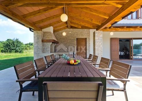 Auf einem Hügel oberhalb der Touristenstadt Rabac liegt die mittelalterliche Stadt Labin, deren alter Name Albona erstmals im Jahr 285 n. Chr. erwähnt wurde. Heute ist es ein Kultur- und Verwaltungszentrum, in dem sich der Reichtum an Architektur und kulturhistorischen Denkmälern selten so reizvoll mit zahlreichen Kunstateliers und dem Hauch der Jugend verbindet, der sich dort vor allem abends in zahlreichen Cafés sammelt. Im östlichen Teil Zentralistriens, auf einem Hochplateau über dem Tal des Flusses Raša und im Hinterland der Stadt Labin, liegt Sveta Nedelja. Die besondere Lage, die Nähe zum Meer, aber auch zu üppigen Wäldern, bedeutet eine ganzheitliche Kombination aus Grün und Blau. Diese Gegend ist voller architektonischer Überreste, die Ihnen die lange und interessante Geschichte dieser Gegend erzählen und in Ihnen den Wunsch wecken, zu erkunden und herauszufinden, warum die Reichen einst genau diese Gegend als Ort für den Bau ihrer Landsitze wählten . Diese wunderschöne Villa liegt etwa 9 km vom Zentrum von Labin entfernt, umgeben von Weinbergen und wunderschöner Natur in einer ruhigen und kleineren Siedlung. Es liegt etwa 13 km von der berühmten Touristenstadt Rabac entfernt und bietet wunderschöne Strände, Spaziergänge, Natur und ein reichhaltiges touristisches Angebot. Istrien, Labin - Eine wunderschöne Villa mit Pool in grüner Umgebung, 210 m2, besteht aus zwei Etagen. Im offenen Erdgeschoss können Sie in einer modernen und voll ausgestatteten Küche mit Essbereich hausgemachte Mahlzeiten zubereiten oder in einem schönen Wohnzimmer mit Kamin entspannen. Im Erdgeschoss befinden sich außerdem 2 Schlafzimmer (ensuite) mit eigenem Bad, sowie eine separate Toilette und ein Abstellraum. Eine schöne Innentreppe führt in die obere Etage, wo sich zwei Schlafzimmer mit jeweils einem Badezimmer, ein großer überdachter Balkon mit schöner Aussicht auf die grüne Landschaft und Eingänge zum Heim-Fitnessstudio mit Toilette befinden. Das Wohnzimmer öffnet sich zu einer schönen, teilweise überdachten Terrasse. Im überdachten Teil der Terrasse befindet sich ein Außengrill. Der Grillplatz ist von einer traditionellen Trockenmauer aus handbehauenen Steinen begrenzt, an die Terrasse schließt sich ein angelegter Strand mit einem 32 m2 großen Pool an. Der Hof ist durch einen gepflegten grünen Zaun begrenzt. Geplant sind zwei überdachte Parkplätze. Diese wunderschöne Villa ist von Weinbergen und grünen Wiesen umgeben, was ein zusätzliches Gefühl von Ruhe und Privatsphäre bietet. Im Garten von 1160 m2 gibt es neben dem Pool und dem Grillplatz mit Gartenmöbeln ausreichend Platz für eine große Familie und Freunde, auch eine Kinderecke mit Trampolin. Ein gepflegter Garten mit Rasenfläche rundet den Eindruck dieser hervorragenden Immobilie ab. Beim Bau dieser Villa wurde besonderes Augenmerk auf die Details und die verwendeten Materialien gelegt. Geheizt und gekühlt wird über einen Kühlventilator und eine Wärmepumpe. Im Wohnzimmer sorgt ein Kamin für eine besondere Atmosphäre in den Wintermonaten. Diese Immobilie bietet Ihnen die Möglichkeit, dem städtischen Lebensstil an einem ruhigen und sicheren Ort, umgeben von viel Grün und unberührter Natur, zu entfliehen. Abgesehen davon, dass die Villa ideal als Familienoase ist, ist sie auch als Villenoption für die touristische Vermietung interessant.