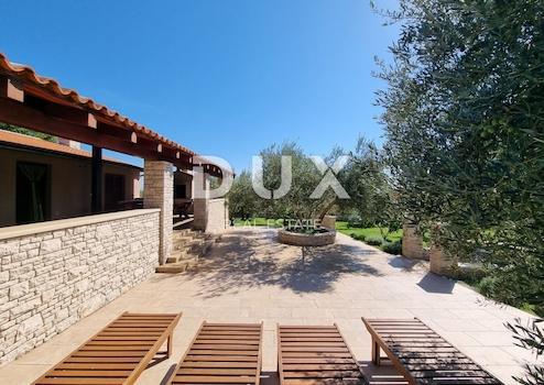 Krnica liegt etwa 25 km südöstlich von Pula und bietet bekannten Sommertourismus in Siedlungen mit einem Qualitätsangebot. Es ist ein geeignetes Reiseziel für alle, die Ruhe, wunderschöne Natur und eine saubere Küste suchen. Das Unterwassergebiet von Krnica eignet sich perfekt zum Tauchen, und Sport- und Freizeitbegeisterte können Tennis, Minigolf, Schwimmbad, Fußball, Handball, Volleyball, Reiten, Adrenalinpark, Geländefahrzeuge genießen oder Ausrüstung für Wassersportarten wie z. B. mieten B. Rudern oder Wasserschwimmer an wunderschönen Stränden. . Auch der gastronomische Teil ist unverzichtbar, so können Sie neben der üblichen istrischen Küche auch die Garnelen probieren, für die Krnica am bekanntesten ist, sowie andere Meeresfrüchte aus der schönen und sauberen Adria. Nur wenige Minuten von Marčana und Krnica entfernt, im autochthonen mediterranen Klima in der Nähe der ersten Strände mit kleinen wunderschönen Buchten, steht ein weitläufiges idyllisches Anwesen zum Verkauf, auf dem sich ein Haus mit Panoramablick auf die Natur und das Meer befindet. Dieses Märchen, umgeben von einem Olivenhain und unberührter Natur, erstreckt sich über eine Gesamtfläche von 6011 m2. Dieses Anwesen ist reich an verschiedenen mediterranen Pflanzen. Insgesamt gibt es 95 Olivenbäume, von denen 15 etwa 75 Jahre alt sind, der Rest etwa 15 Jahre. Hier finden Sie auch andere Pflanzen wie Lavendel, Weinreben, Hagebutten, Orangen, Mandarinen, Feigen, Quitten, Jujube, Eichen und andere Pflanzen und Bäume. Das Haus besteht aus einem geräumigen Wohnzimmer mit Küche und Esszimmer in einem offenen Konzept mit direktem Zugang zu einer überdachten Terrasse mit einer Gesamtfläche von 60 m2, drei Schlafzimmern mit direktem Zugang zu den Terrassen, einer Toilette und einem Badezimmer. Auf der großen überdachten Terrasse befindet sich eine Sommerküche mit einem schönen Kamin, von dem aus Sie eine herrliche Aussicht genießen und völlige Ruhe genießen können. Das Haus hat eine Gesamtfläche von 97 m2. Das Haus ist mit Möbeln ausgestattet, die im Preis inbegriffen sind. Geheizt und gekühlt wird über eine Klimaanlage, außerdem gibt es im Wohnzimmer einen Kamin, sodass die Möglichkeit besteht, eine weitere Heizquelle zu installieren. Das Haus ist luftig und angenehm genug und schafft eine fantastische Oase einer völlig anderen Welt als die, die wir gewohnt sind. Auf einem großen Garten wird ungestörte Ruhe geboten, wobei die Lage hervorzuheben ist, da sie abgeschieden ist, in der Nähe einer Kleinstadt und dennoch in der Nähe von schönen Stränden und allen anderen Einrichtungen wie Geschäften, Cafés, Restaurants, Kindergärten, Schulen und anderen. Aufgrund der isolierten und ruhigen Lage, uneinsehbar, ist dies eine ideale Gelegenheit für ein ruhiges Familienleben, Ruhe und Entspannung oder als Investition zur Vermietung für touristische Zwecke.