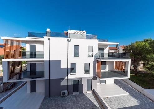 Neu gebaute Wohnungen zum Verkauf in unmittelbarer Nähe zum Strand, Vodice. Ein wunderschönes Gebäude mit modernem Design, das sich in die Umgebung einfügt, besteht aus sechs Wohneinheiten. Im Keller gibt es Garagenplätze und Lagerräume. Die Wohnungen werden nach modernsten Baustandards ausgestattet (Jalousien mit elektrischen Aufzügen, Moskitonetze, Fußbodenheizung...). Es ist ein idealer Ort für einen Aufenthalt das ganze Kalenderjahr über und liegt nur 100 m vom Strand entfernt. Der geplante Einzug ist im Mai 2024.