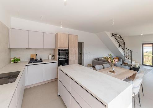 Das Erdgeschoss des Hauses verfügt über einen separaten Eingang mit Sicherheitstür und im Inneren befindet sich ein geräumiges, offenes Wohnzimmer mit Esszimmer, das einen wunderschönen Blick auf das Meer bietet. Auf dieser Etage gibt es außerdem eine moderne Küche, Toilette, Badezimmer und ein Schlafzimmer. Das Wohnzimmer und das Esszimmer haben direkten Zugang zu zwei Terrassen mit Blick nach Süden und einem Swimmingpool von 13,78 m².