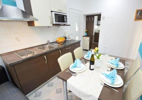 Zum Verkauf steht ein geräumiges Apartmenthaus in einer ruhigen Bucht in der Nähe von Tribunj. Das Haus besteht aus Keller, Erdgeschoss, Obergeschoss und Dachgeschoss. Das Haus hat einen großen, schön angelegten Garten, wo es gibt: Swimmingpool, überdachte Laube, Sommerküche, Grill und Parkplatz für mehrere Autos. Es befindet sich in ruhiger Lage, 250 m vom Meer entfernt. Im Untergeschoss befinden sich eine Sauna, eine Waschküche, ein Heizungsraum, drei Schlafzimmer und ein Abstellraum. Das Untergeschoss (160 m2) gehört zur Zweizimmerwohnung im Erdgeschoss, die 100 m2 hat. Die Außentreppe führt in den ersten Stock und das Dachgeschoss, wo sich sechs weitere Apartments (ein oder zwei Schlafzimmer) befinden, die für die touristische Vermietung genutzt werden. Ein ausgezeichnetes Anwesen mit einem etablierten touristischen Vermietungsgeschäft.