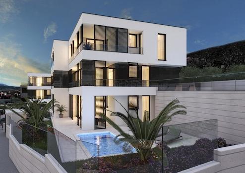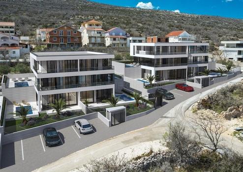 Der gesamte Komplex umfasst zwei Gebäude mit jeweils sechs Wohnungen, von denen die Wohnungen im Erdgeschoss und im ersten Stock über eigene Swimmingpools und Gärten verfügen.