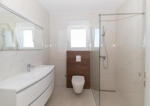 Penthouse zum Verkauf in der zweiten Reihe zum Meer, Murter. Das ausgezeichnete Penthouse im neuen Gebäude erstreckt sich über den gesamten zweiten Stock des modernen Designgebäudes. Es besteht aus drei Schlafzimmern, zwei Bädern, Gästetoilette, Flur und Wohnzimmer mit Küche und Essbereich in einer Einheit. Das Penthouse hat auch drei geräumige Terrassen, eine von 8,70 m2, die einen Ausgang von einem Schlafzimmer hat, die zweite von 5,84 m2 hat einen Ausgang vom zweiten Schlafzimmer, während die drittgrößte von 34,20 m2 einen Ausgang vom Wohnzimmer hat. Hervorragender Grundriss, hochwertige Konstruktion und Materialien sowie ein wirklich unschätzbarer Blick auf das Meer und die Lage des Penthouse sind Eigenschaften, die Sie bei der Auswahl dieser schönen Immobilie nicht ignorieren dürfen. Es befindet sich im Bau und wird nach höchsten Standards gebaut und verfügt über folgende Ausstattung:
