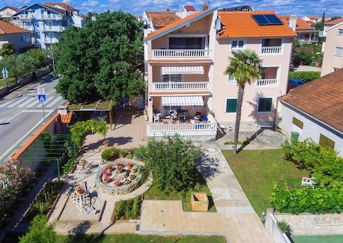 Zum Verkauf steht ein Haus mit sechs Wohnungen und einem etablierten Restaurant in toller Lage in Vodice. Im Erdgeschoss befindet sich eine Zweizimmerwohnung, die mit einer großen Terrasse und einem großen Garten verbunden ist. Im ersten Stock befinden sich drei Einzimmerwohnungen, die jeweils über eine Küche, ein Esszimmer, ein Schlafzimmer und eine Terrasse verfügen. Die zweite Etage besteht aus zwei weiteren Einzimmerwohnungen, die aus einem Schlafzimmer, einem Badezimmer und einem Wohnzimmer mit Küche und Esszimmer in einer Einheit bestehen, die mit einer Terrasse mit schöner Aussicht verbunden sind.
