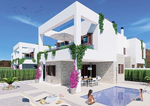 Doppelhaushälften mit 2 Schlafzimmern, 2 Bädern, Keller, Dachterrasse mit Meerblick und optionalem Privatpool nur 400 m vom Strand