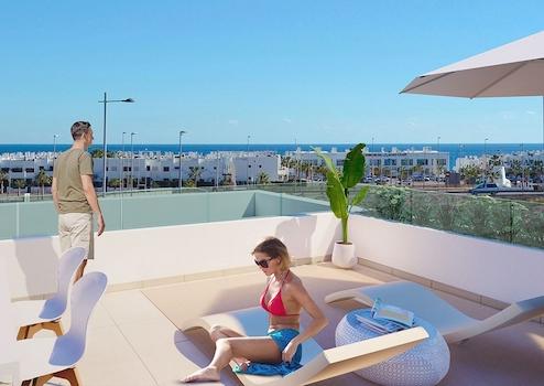 Die Wohnanlage überzeugt durch ihre strandnahe Lage: Vor der Wohnanlage befinden sich die Strände La Entrevista und Los Nardos. Ganz in der Nähe liegen die Strände von San Juan de los Terreros, Mar Serena, Mar Rabiosa, Calipso, La Higuerica, La Carolina sowie die Buchten Tía Antonia, Cala Cuartel und Cala Cocedores.