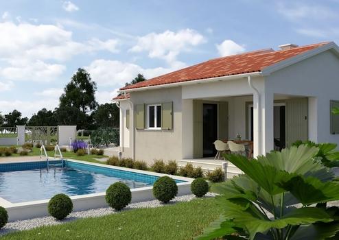 Das Haus ist im traditionellen Stil als einstöckiges Haus mit zwei Schlafzimmern und zwei Badezimmern gebaut. Der Wohnraum besteht aus Küche, Esszimmer und Wohnzimmer. Das Haus wird mit Heizung und Kühlung mittels Wärmepumpe, Fußbodenheizung in den Badezimmern und einem Holzkamin im Wohnzimmer für eine vollständige Atmosphäre ausgestattet sein. Das Haus wird energieunabhängig sein und über Sonnenkollektoren zur Stromerzeugung verfügen. Der große Garten wird eingezäunt und im traditionellen mediterranen Stil gestaltet, im zentralen Teil ist ein großer Swimmingpool mit angelegter Liegewiese geplant.