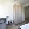 Dieses Schlafzimmer ist das größte der 3. Es verfügt über 2 Boxspringbetten, zu öffnende Fenster, einen Heizkörper und natürlich einen geräumigen Kleiderschrank mit Liege- und Hängefläche. Es gibt auch Platz für ein Babybett. Ein Stuhl und ein Schminkspiegel sind vorhanden.