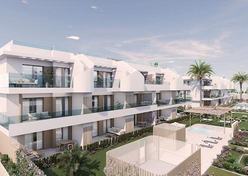 Die kleine Wohnanlage hat insgesamt nur 66 Wohnungen. Sie können wählen zwischen Erdgeschoss-Wohnungen mit einem privaten Garten, Wohnungen im ersten Stock mit großzügigen Terrassen und Obergeschoss-Wohnungen mit einer Dachterrasse. Die Wohnanlage verfügt über ein Schwimmbad, eine Sauna, einen Fitnessraum und gemeinschaftliche Grünflächen und Chill-out, sowie Parkplätze für Fahrräder.