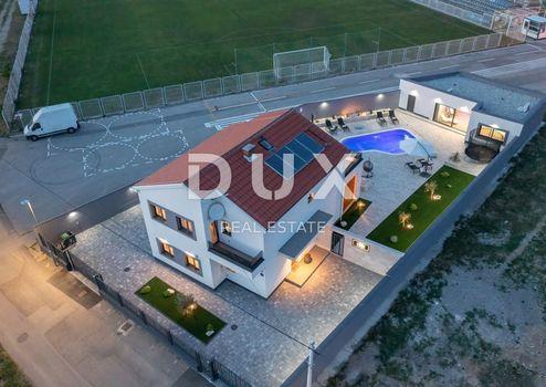 Diese moderne Villa mit einer Fläche von 302 m2 mit Swimmingpool befindet sich genau in dieser charmanten Stadt. Die Villa wurde 2022 komplett renoviert, wobei nur hochwertige Materialien verwendet wurden. Es ist mit äußerst hochwertigen Möbeln und Geräten ausgestattet, daneben wurde ein Nebengebäude für Genuss und Geselligkeit errichtet. Die Villa erstreckt sich über zwei Etagen. Es enthält vier Schlafzimmer, jedes mit eigenem Bad, Wohnzimmer, Küche, gemeinsames WC, eine schöne geräumige Terrasse und einen Balkon. Die Beheizung erfolgt über Sonnenkollektoren, was die Kosten erheblich senkt. Der Hof ist mit einem schönen beheizten Pool von 30 m2 zum Genießen in den Sommermonaten, einer Außenküche und einer Nebeneinrichtung mit Whirlpool, Sauna, Billard, Darts und einem Badezimmer mit Toilette ausgestattet. Für Ihre Autos stehen neben der Villa selbst 4 Parkplätze zur Verfügung. Alles, was Sie für einen hochwertigen Urlaub benötigen, befindet sich an einem Ort, und das Wichtigste ist die Nähe zum Meer, zum Zentrum und zu allen anderen Einrichtungen. Diese schöne Villa kann als Flucht aus dem Alltag oder als gute Investition dienen. In beiden Fällen wird es sicherlich Ihre Erwartungen rechtfertigen.