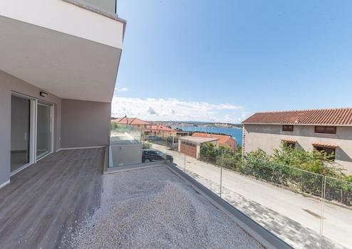 Wohnung zum Verkauf in einem neuen, modernen Gebäude, Čiovo. Das Gebäude befindet sich in ruhiger Lage und in Strandnähe. Es ist nur 150 m vom Meer entfernt. Es ist perfekt gelegen und nur 5 Gehminuten vom Geschäft, dem Strand oder der Bushaltestelle entfernt. Sie haben nur einen 10-minütigen Spaziergang zur alten Brücke und eine 10-minütige Fahrt zum Flughafen. Es ist nach Süden ausgerichtet und bietet einen schönen Blick auf die Bucht, das Meer und die Insel Šolta.