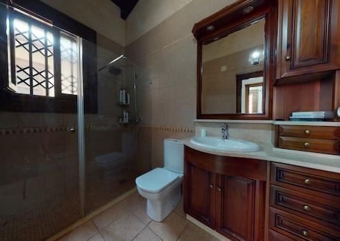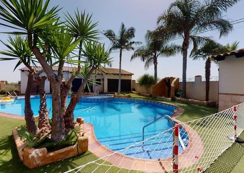 Fabelhafte, komplett möblierte, freistehende Villa in einer ruhigen Straße in der kleinen Gemeinde Catral. Beim Betreten der Villa finden Sie einen prächtigen Raum mit schönen Holzdecken, der derzeit als Hauptwohnbereich genutzt wird, und auf einer etwas erhöhten Etage das Esszimmer sowie einen Waschraum (Toilette und Waschbecken). Eine separate, fantastische, voll ausgestattete Küche, die zu einem malerischen Terrassenbereich und Hauswirtschaftsraum auf der Rückseite des Grundstücks führt. Auf dieser Etage befinden sich außerdem ein Badezimmer und drei Schlafzimmer, alle mit Einbauschränken, darunter das größte Zimmer mit eigenem Bad und Doppeltüren, die Zugang zu einem schönen Terrassenbereich an der Vorderseite des Haupthauses ermöglichen. Im Obergeschoss befindet sich ein Hauptschlafzimmer mit begehbarem Kleiderschrank, ein riesiges En-Suite-Badezimmer und ein Balkon mit herrlichem Blick auf den großen Garten. Auf dem Grundstück finden Sie auch ein fantastisches Poolhaus mit zwei Zimmern und einem Badezimmer, ein Mehrzweckgebäude mit einem großen, eingebauten Grill, einer Küche und viel Platz für die Bewirtung von Gästen sowie ein Badezimmer das derzeit als Ankleidezimmer und Garage mit 3 elektrischen Türen darunter genutzt wird, die als privater Anbau mit Waschraum (Toilette und Waschbecken) und Kochnische genutzt werden kann. Auf einem Grundstück von 2000 m² mangelt es Ihnen nicht an Platz im Freien, um die Sommersonne entweder am privaten Swimmingpool oder rund um die privaten Gärten zu genießen. Innerhalb von fünf Autominuten erreichen Sie Geschäfte, Bars, Restaurants, eine medizinische Klinik, eine Apotheke und eine Schule. Der Strand und der nächste Flughafen sind innerhalb einer dreißigminütigen Autofahrt erreichbar.
