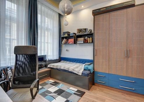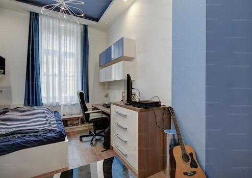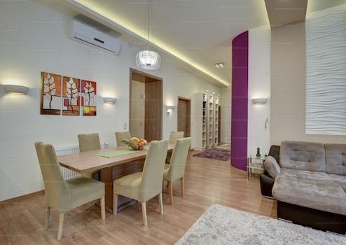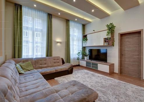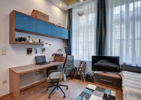 Belvárosban a 6 kerületben a Gozsdu udvar magasságában eladó egy 6 szobás, két fürdőszobás, 153 nm-es, 2. emeleti, liftes, belsőépítész által tervezett, bútorozott utcai nézetű lakás.