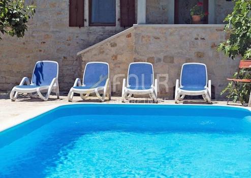 Wir haben eine Immobilie in der Nähe von Višnjan zum Verkauf, die aus zwei Häusern, einem Außenpool, einer Garage und einem gepflegten und umzäunten Gartenbereich von 2.100 m² besteht.