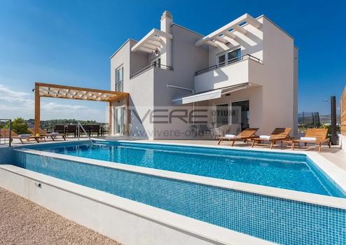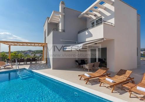 An der Peripherie der Ortschaft Brodarica gelegen, eingebettet in traumhafter Natur, bietet diese elegante Immobilie Ihrer Familie und Gästen eine moderne Unterkunft mit allen Annehmlichkeiten. Modernes Design und zeitgemäße Technik verwandeln diese Immobilie zu einer Wohnoase, die auch höchsten Qualitätsansprüche genügt. Die Villa mit Blick auf das Meer und die Stadt Šibenik befindet sich in nur 500 m Entfernung zum Strand und dem azzurblauen Meer. Die Immobilie befindet sich in der Nähe aller Annehmlichkeiten und bietet dennoch Ruhe und Privatsphäre. Brodarica, ein südlicher Vorort von Šibenik, besitzt eine 4 km lange Küstenlinie mit Kiesstränden, Läden, Restaurants, Kaffees und einer wunderschönen Strandprommenade. Bis in die historische Altstadt von Šibenik sind es nur 5 km, die internationalen Flughäfen von Split und Zadar befinden sich in ca. 45 km Entfernung.