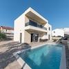 Ausgezeichnetes Einfamilienhaus mit Swimmingpool zu verkaufen, Vodice. Dieses schöne, moderne Haus liegt in einem ruhigen Teil der Stadt und dennoch nah an allen Annehmlichkeiten. Es besteht aus Erdgeschoss und Obergeschoss. Im Erdgeschoss befinden sich ein Eingangsbereich, ein Wohnzimmer mit Küche und Esszimmer in einer Einheit, ein Badezimmer, ein Schlafzimmer, ein Abstellraum und eine überdachte Terrasse. Vom Wohnzimmer aus gibt es einen Ausgang zu einer überdachten Terrasse, vor der sich ein Garten mit Swimmingpool befindet. Die Innentreppe führt in den ersten Stock, wo sich drei Schlafzimmer, drei Badezimmer, eine Waschküche, eine Eingangshalle und zwei Balkone befinden. Zum Haus gehören außerdem zwei Parkplätze. Ausgezeichnetes Anwesen, geeignet für einen ganzjährigen Aufenthalt oder zur touristischen Vermietung. Es ist nur 1300 m vom Meer und dem Stadtzentrum entfernt. Als typische Mittelmeerstadt bietet Vodice zahlreiche Einrichtungen und ermöglicht seinen Bewohnern das ganze Kalenderjahr über ein qualitativ hochwertiges Leben.