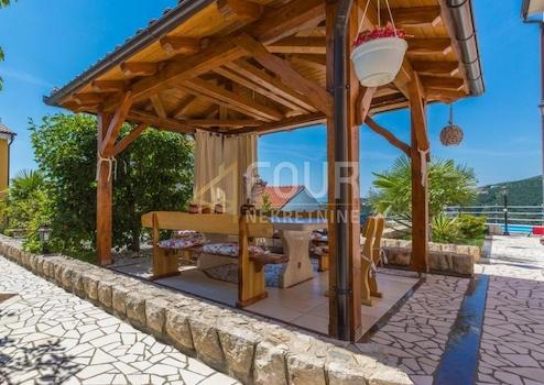 Es befindet sich auf einem 561 m² großen Grundstück und ist mit einem wunderschönen Garten mit Swimmingpool, Liegestühlen, einer Sommerküche und einem überdachten Bereich mit Esstisch ausgestattet.