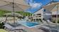 Living room has access to a terrace with a kitchen and lounge area, only a few steps aways from a attractive swimming pool and a sundeck. Fully furnished. On a beautiful decorated garden 1313 sqm there are parking spaces. Beautiful and quiet location, 3 km from the sea.