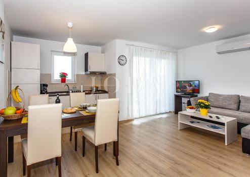 House on sale situated in a quite enviorement, surrounded with an unattached pure nature and clean air with an amasing sea view. The house has 3 floors; groundfloor, first floor and the second floor, built on the parcel of 746 sqm. This residential vila contains 6 apartaments big 45 - 50 sqm from which 3 has 2 bedrooms, kitchen with a living room and bathroom, while the other 3 has 1 badroom, kitchen with a living room and bathroom. Each of the apartament has a balcony with a view on the sea and the nature. Whole building are equipped with the air conditions (converters). The apartaments are cosy furnished and good maintained. On the yard of 615 sqm is heated swimming pool, barbecue area and the space for chill out. There are 7 parking plots. Distance to the sea, restaurants, supermarkets is 2000 m.