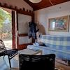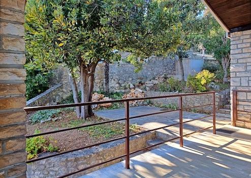 Der Garten ist umzäunt und mit mediterranen Kräutern und Pflanzen geschmückt. Außerdem gibt es dort einen Wassertank.