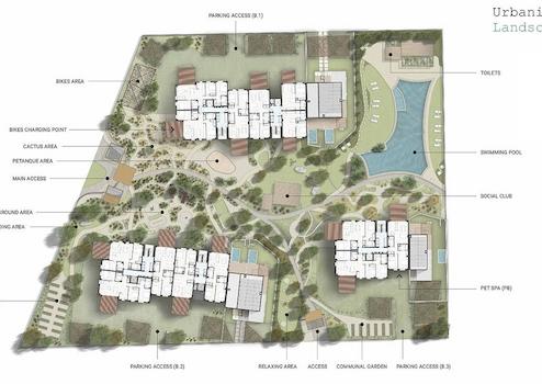 Die Gemeinschaftsbereiche dieser Siedlung verkörpern einen sehr natürlichen Geist. Bei einem Spaziergang durch die verschiedenen Bereiche finden Sie ideale Plätze zum Flanieren, für sportliche Aktivitäten und vor allem für die Nutzung von Fahrrädern. Treffen Sie sich mit Ihrem Partner, Ihrer Familie oder Ihren Freunden in den Social Clubs oder genießen Sie offene, sonnengeschützte Plätze und entspannen Sie sich an kühlen Stellen, wo die Vegetation gedeiht und die Luft ständig zirkuliert. Es gibt außerdem große und zahlreiche Schwimmbäder, die über das gesamte Wohngebiet verteilt sind, sensorische Gärten, Yogaräume, Gemüsegärten für den Eigenverbrauch, Fahrradwerkstätten und Waschplätze für Haustiere.