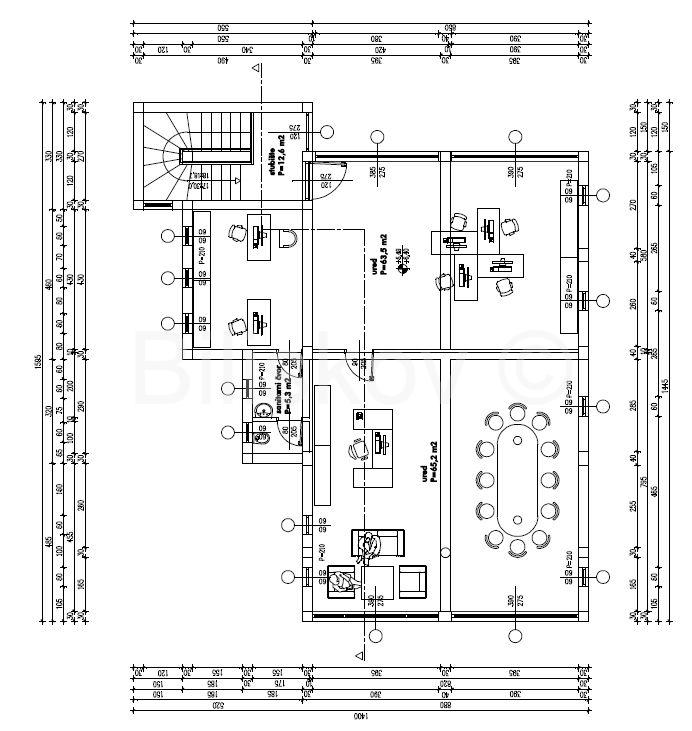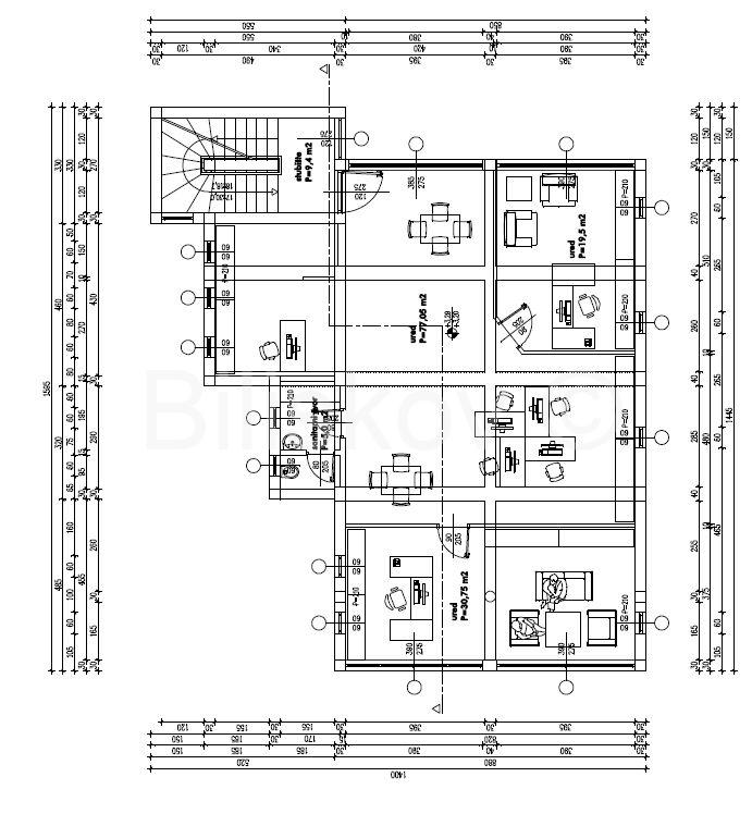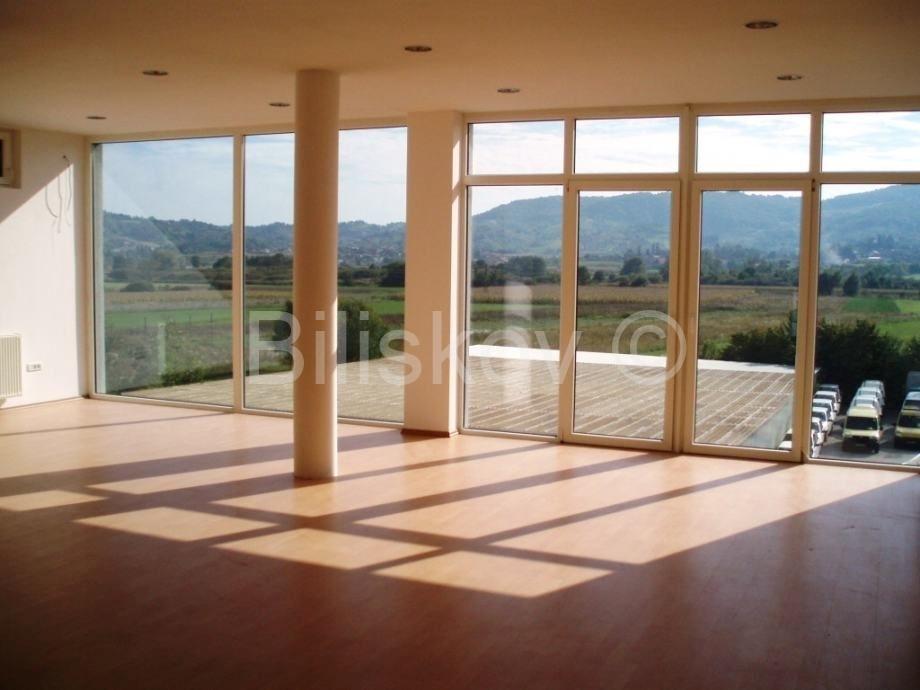 Erster Stock: Eingang über das Treppenhaus, grösserer Raum, derzeit Buchhaltungsbüro mit 6 Arbeitsplätzen und 2 Tischen für Kunden, zwei separate Büros, Toilette und Küchenzeile. Der Boden ist aus Laminat und die Decke ist aus „Knauf“ mit integrierter hochwertiger Beleuchtung, der Raum ist klimatisiert (170 m2).