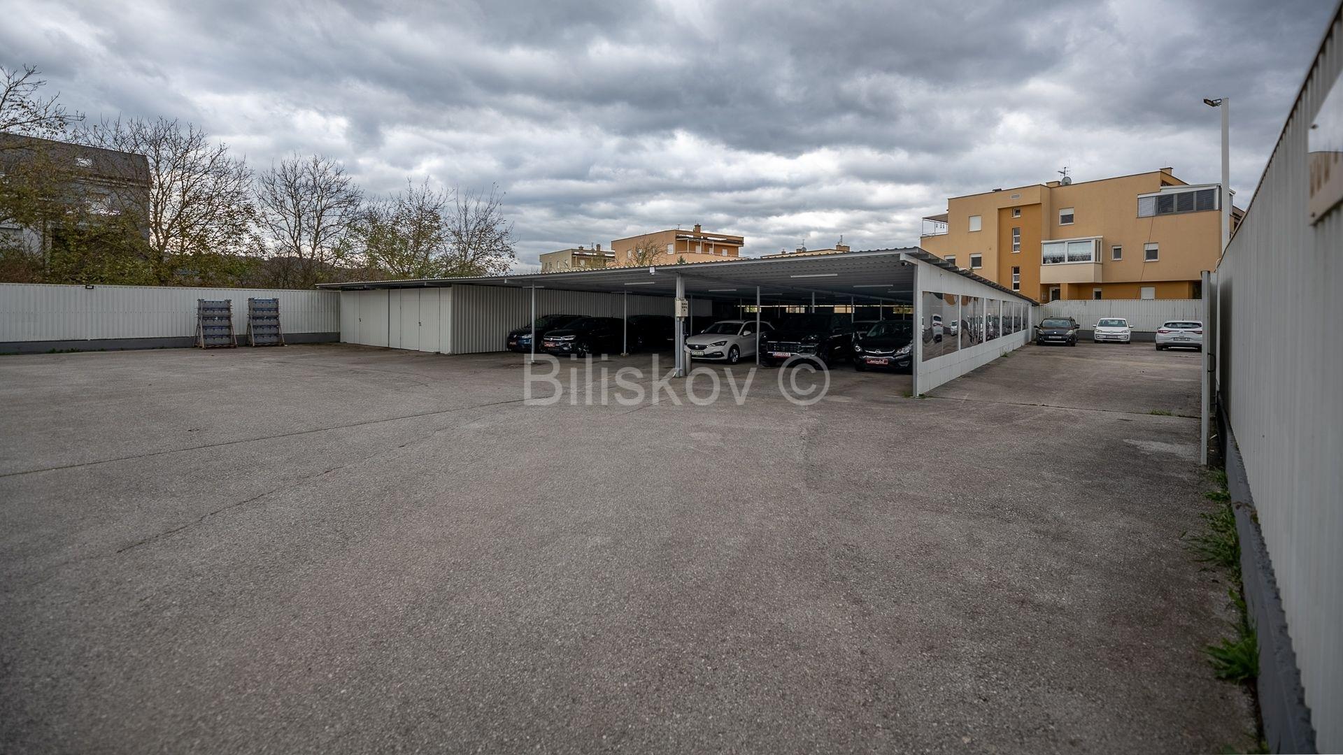 Die Fläche des Grundstücks beträgt 1.858 m2, es ist komplett asphaltiert, von einem neuen, ca. 2,20 m hohen Zaun umgeben und mit Reflektoren beleuchtet. Auf dem Parkplatz befindet sich ausserdem ein Carport für 80 Fahrzeuge. Der Baldachin wird mit etwa 40 Neonlampen beleuchtet.
