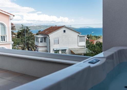 In sehr attraktiver Lage in unmittelbarer Nähe zum Meer und zum Zentrum steht eine neue moderne Penthouse-Wohnung mit wunderschönem Blick auf das Meer zum Verkauf. Die Wohnung befindet sich im gesamten zweiten Obergeschoss eines Mehrfamilienhauses mit insgesamt drei Wohneinheiten und belegt 117 m2 Wohnfläche.
