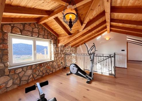 Das größere Haus mit einer Gesamtwohnfläche von 180 m2 erstreckt sich über drei Etagen. Im Erdgeschoss erwartet Sie ein geräumiges Wohnzimmer, zwei komfortable Schlafzimmer und ein Badezimmer. Im ersten Stock befinden sich eine voll ausgestattete Küche mit Essbereich, ein zusätzliches Schlafzimmer, zwei Balkone mit herrlichem Blick und ein weiteres Badezimmer. Das Dachgeschoss des Hauses bietet zusätzlichen Komfort mit zwei Schlafzimmern, einem Fitnessraum, einem Badezimmer und einem Balkon.