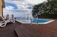 Auf der eingezäunten und angelegten Gartenfläche von 527 m² gibt es einen Überlaufpool, einen Hydromassagepool für 4-6 Personen.
