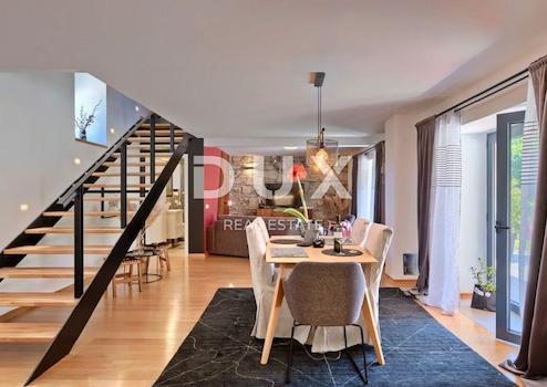 In ruhiger und ruhiger Umgebung der Stadt Labin, umgeben von grünen Wiesen, Wäldern, Hügeln, traditionellen Häusern und alten Ortsstraßen, steht ein modern renoviertes Steinhaus mit Swimmingpool zum Verkauf. Das Haus wurde durch die Rekonstruktion eines autochthonen istrischen Hauses aus dem Anfang des 20. Jahrhunderts unter Verwendung alter Handwerkskunst und der Verwendung ursprünglicher Materialien und Bauweisen geschaffen und zeichnet sich durch eine Kombination aus Authentizität und Moderne aus. Das Innere des alten Steinhauses, das vor dem Vergessen gerettet und durch Adaption vollständig an den modernen Lebensstil angepasst wurde, strahlt mit einer Kombination aus modernen und rustikalen Stilmöbeln ein Ambiente voller Wärme von Holz und Frische von Stein aus. Der Wohnbereich ist in Erdgeschoss und Obergeschoss aufgeteilt. Im Erdgeschoss befinden sich ein Wohnzimmer, ein Esszimmer und eine Küche mit Ausgängen zu einer geräumigen überdachten Terrasse und ein Badezimmer, während sich im ersten Stock zwei Schlafzimmer und ein Badezimmer befinden. Das Haus ist von einem sorgfältig angelegten Garten umgeben, der eine Kombination aus Komfort, Ruhe und Natur bietet, und es ist mit einem 40 m² großen Außenpool geschmückt. Weit weg vom Lärm der Stadt ist diese Immobilie eine ideale Gelegenheit für ein ruhiges Familienleben sowie eine Investition zum Zweck der touristischen Vermietung.