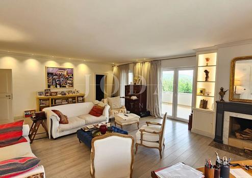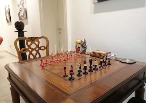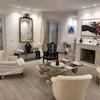 Die Wärme des Kamins und der Marmorplatten sorgt für ein angenehmes Gefühl von Zuhause, und die Fußbodenheizung erhöht den Komfort zusätzlich.