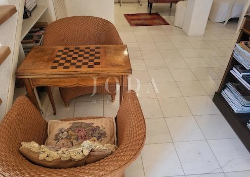 Das erste Haus besteht aus zwei Etagen. Auf der ersten Etage befinden sich 3 Schlafzimmer, 2 Bäder, Küche, Esszimmer, Wohnzimmer. Eine Innentreppe führt in den ersten Stock, der aus einem Hauptschlafzimmer und einem Badezimmer und einer schönen Terrasse mit offenem Meerblick besteht. Die große Terrasse mit freiem Blick aufs Meer ist eine Oase der Ruhe und der perfekte Ort zum Entspannen. Dieses geräumige Hauptschlafzimmer im ersten Stock bietet Privatsphäre und Luxus.