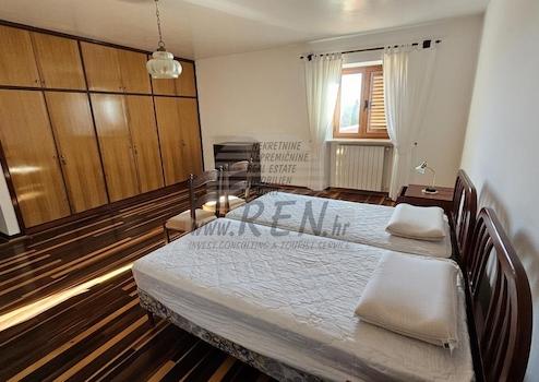 Das Haus in Nova Vas hat insgesamt 600 m2 + Garten 9600 m2, es ist 10 min. (6000m) vom Meer und von einem wunderschön angelegten Naturstrand, 5 Min. (500m) vom Zentrum entfernt. Das Haus verfügt über ein Erdgeschoss, einen ersten Stock und einen zweiten Stock. Im Erdgeschoss gibt es eine Eingangshalle mit Bad, ein Wohnzimmer mit Esszimmer (alles offen), eine Eingangshalle und eine Küche mit zusätzlichem Platz (Waschmaschine, Speisekammer etc.). Vom Wohnzimmer aus gelangt man auf die Terrasse/Wintergarten, die einen schönen Blick in die Natur bietet. Im ersten Stock gibt es ein Hauptschlafzimmer mit eigenem Bad, Kleiderschrank und Terrasse (geschlossener Typ) mit schöner Aussicht auf Učka, außerdem gibt es zwei weitere Schlafzimmer und ein separates Badezimmer. Die Böden sind mit aus Südafrika importiertem Holz dekoriert. Im zweiten Stock befindet sich praktisch eine zusätzliche Wohnung mit einem Schlafzimmer, 2 Bädern und einem Wohnzimmer. Das Haus verfügt über eine Thermofassade, Gaszentralheizung, Klimaanlage, Böden aus massivem exotischem Holz, Küche und Badezimmer mit Keramikverkleidung. Es gibt auch einen Olivenhain. Das Grundstück ist komplett von einem Zaun umzäunt. Auf dem Grundstück gibt es einen zusätzlichen Abstellraum und eine Garage (Garage von ca. 46 m2).