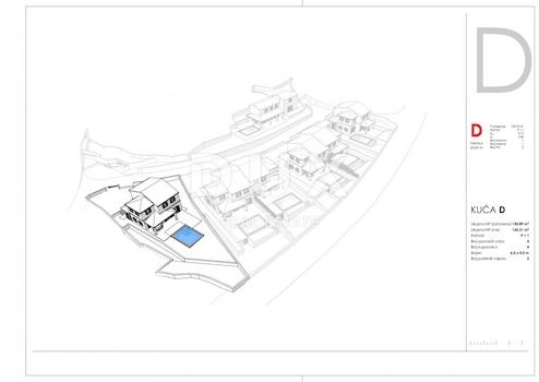 Zum Verkauf steht das Projekt eines Einfamilienhauses „D“ mit Swimmingpool und Garten, das in ein Erdgeschoss und ein Obergeschoss aufgeteilt ist. Im Erdgeschoss des Hauses gibt es einen offenen Wohnbereich mit Küche und Esszimmer mit Zugang zu einer überdachten Terrasse, Garten und Swimmingpool sowie ein Schlafzimmer mit eigenem Bad. Im ersten Stock des Hauses haben wir drei weitere Schlafzimmer, jeweils mit eigenem Bad. Die Gesamtfläche des Hauses beträgt 180 m2. Das Haus verfügt über zwei Parkplätze im Hof. Das Projekt wird mit Baugenehmigung verkauft, Preis auf Anfrage, die Möglichkeit einer Vereinbarung mit dem Verkäufer über den Bau und Verkauf in der schlüsselfertigen Phase. Sehr geehrte Kunden, die Vermittlungsprovision wird gemäß den Allgemeinen Geschäftsbedingungen berechnet. www.dux-nekretnine.hr/opci-uvjeti-poslovanja
