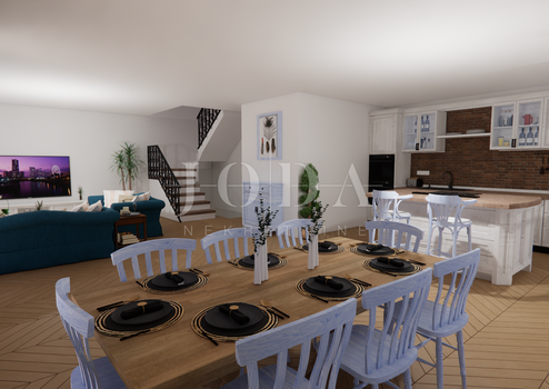 Eine neue Doppelhaushälfte mit einer Nettofläche von 172,17 m2 (Brutto 209,15 m2) in schöner Lage, umgeben von Familienvillen. Das Haus besteht aus Keller, Erdgeschoss und Obergeschoss. Der Keller kann in Freizeitraum, ein Spielzimmer für Kinder, einen Fitnessbereich oder nach Wunsch eingerichtet werden. Das Erdgeschoss ist ein offener Raum, der Wohnzimmer, Küche und Esszimmer vereint und Zugang zum Garten und zu den Terrassen bietet. Es gibt auch ein Badezimmer im Erdgeschoss. Im ersten Stock befinden sich drei komfortable Schlafzimmer und ein Badezimmer. Das Haus verfügt über Fußbodenheizung.